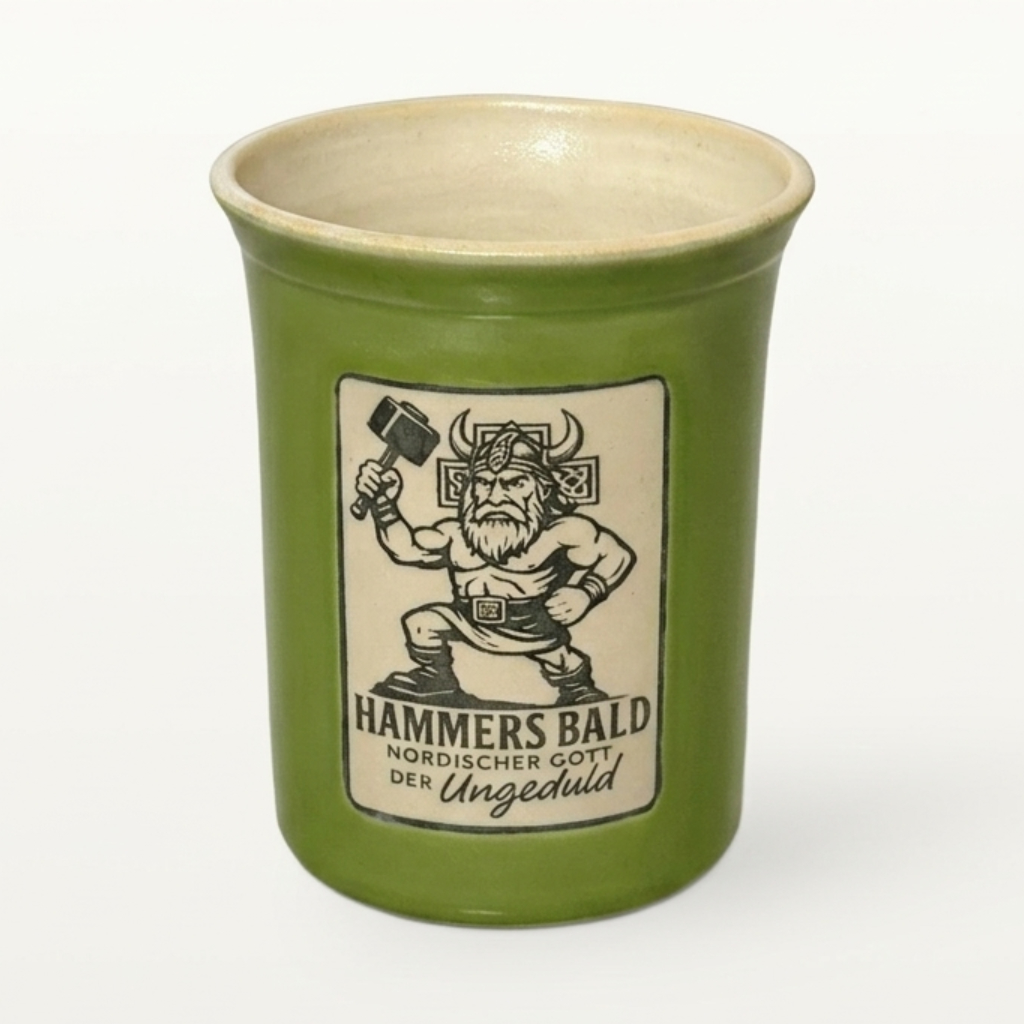 Ehrlicher Humor: Das Motiv „Thor“ mit dem markanten Hammer ist ein klares Statement für alle Fans der nordischen Mythologie und starken Charaktere. Es zeigt jedem am Frühstückstisch oder im Büro: Hier wird nicht lang gefackelt, hier wird mit göttlicher Energie in den Tag gestartet.